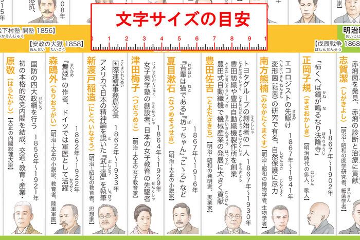 そこで、歴史上の人物を簡単な説明とイラストで紹介しました。