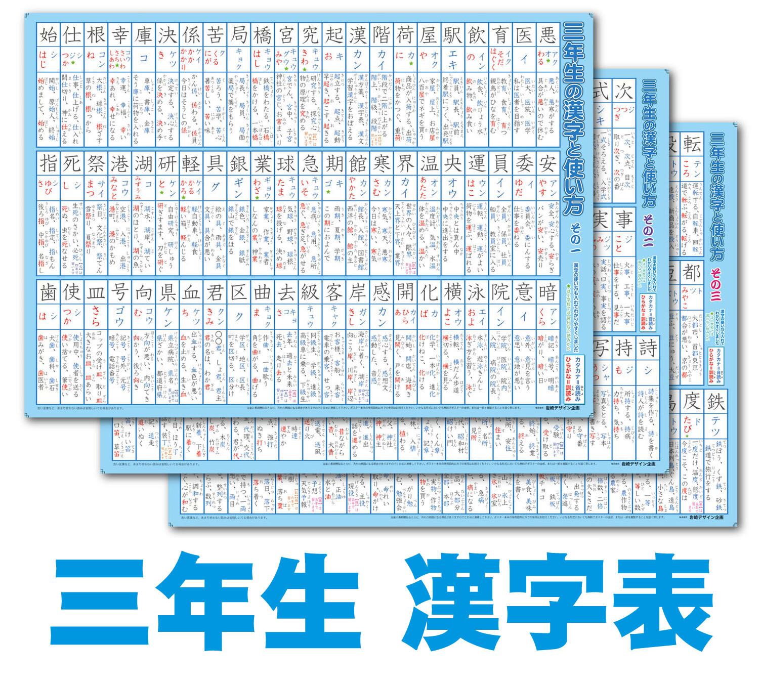 「3年生の漢字と使い方」【封筒発送、送料込み】使うことを目的とした漢字ポスター お風呂ポスター 全200字 イラスト入り 小学校三年